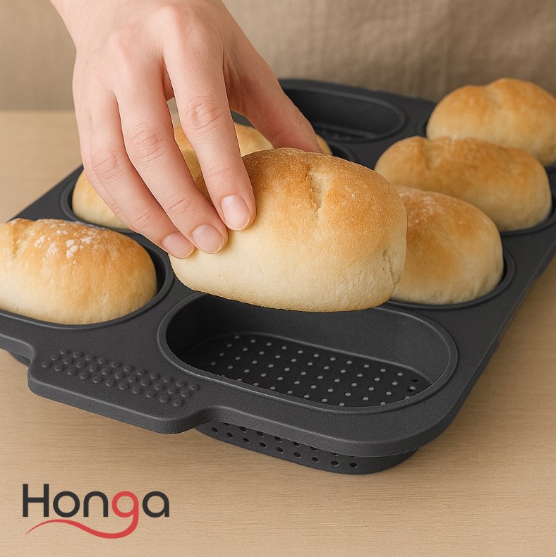⭐Nasza forma silikonowa do bułek to niezastąpione narzędzie każdego miłośnika domowego pieczenia. Dzięki niej Twoje wypieki będą zawsze udane – puszyste w środku i rumiane na zewnątrz.
