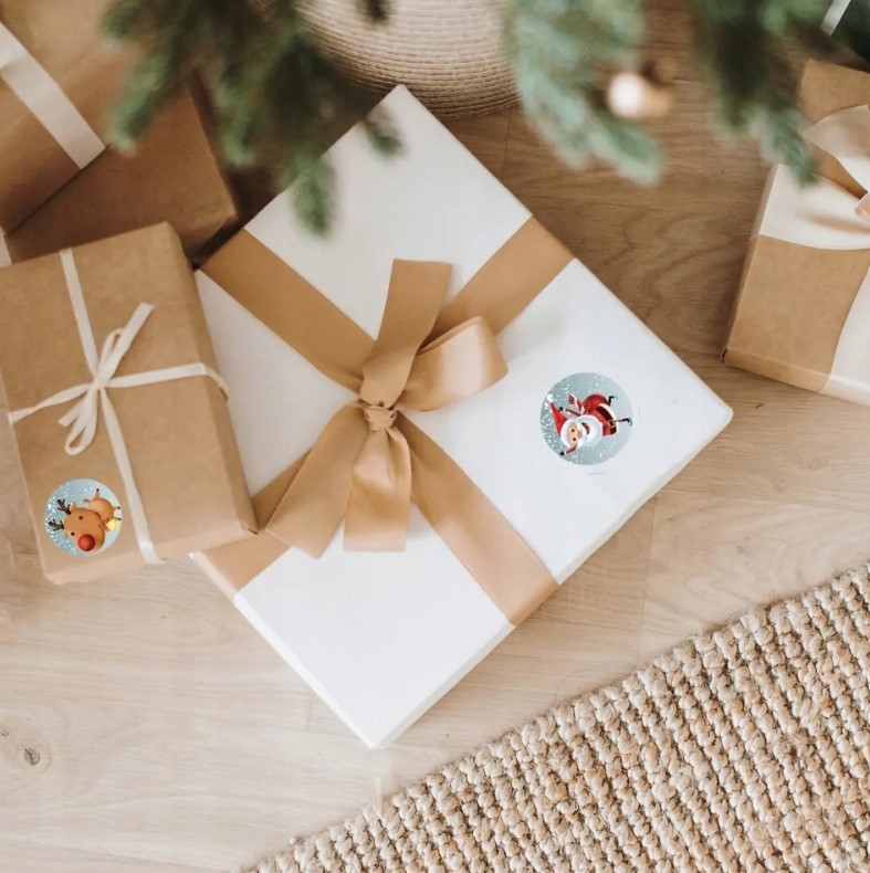 Naklejki Świąteczne na Prezenty Rolka 500szt 8 Unikalnych Wzorów
