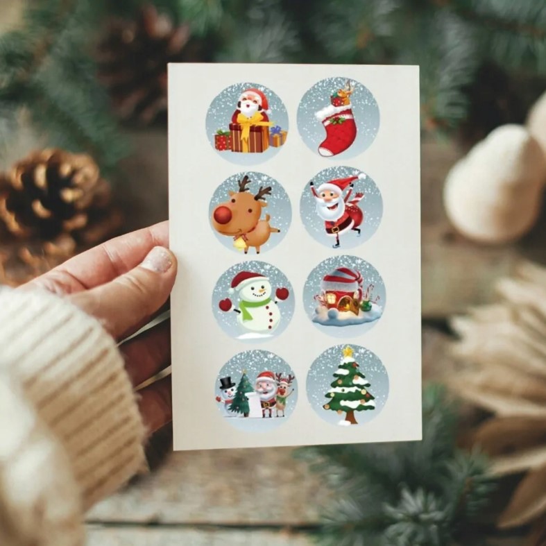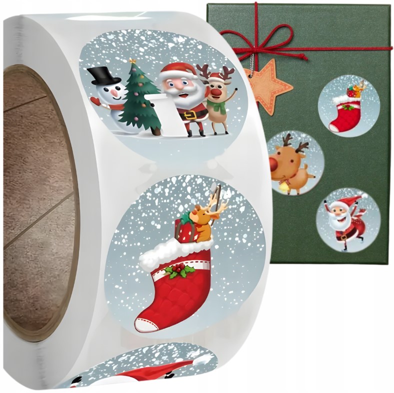 Świąteczne Naklejki Samoprzylepne – Rolka 500 szt. | 8 Uroczych Wzorów