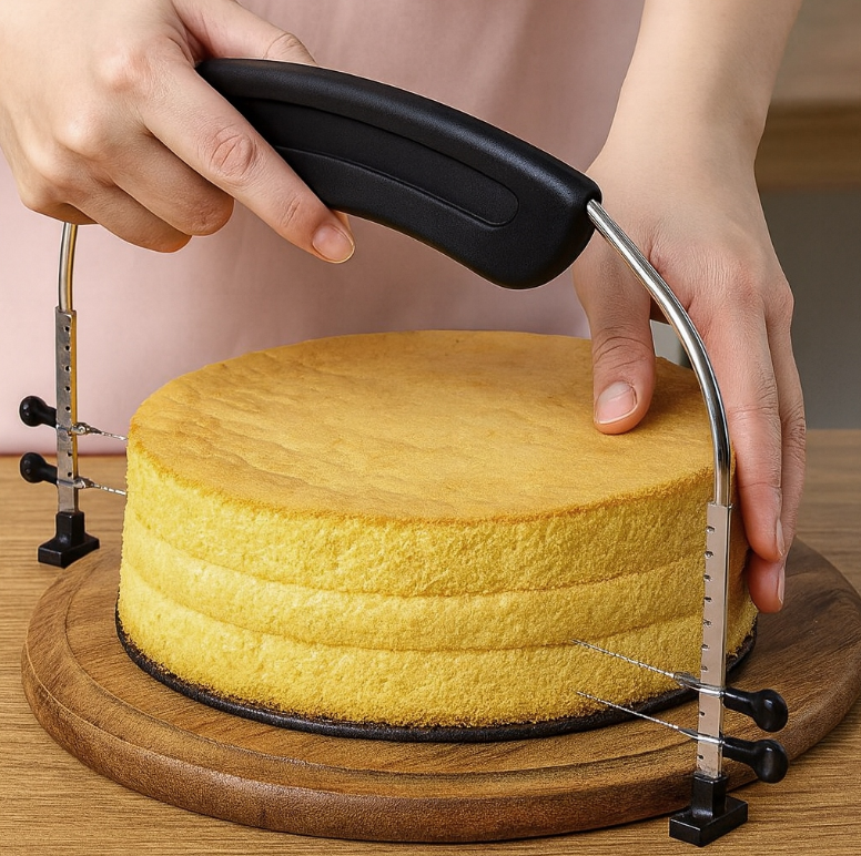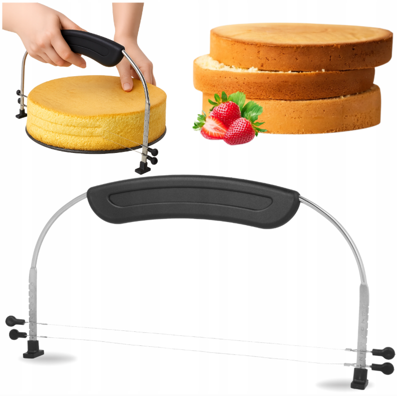 - Dwie wytrzymałe struny – gwarantują równy, czysty i powtarzalny efekt, co znacząco skraca czas przygotowania tortu.