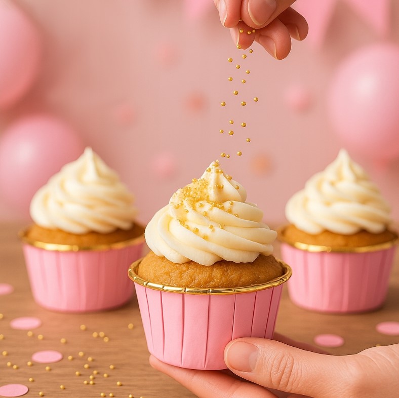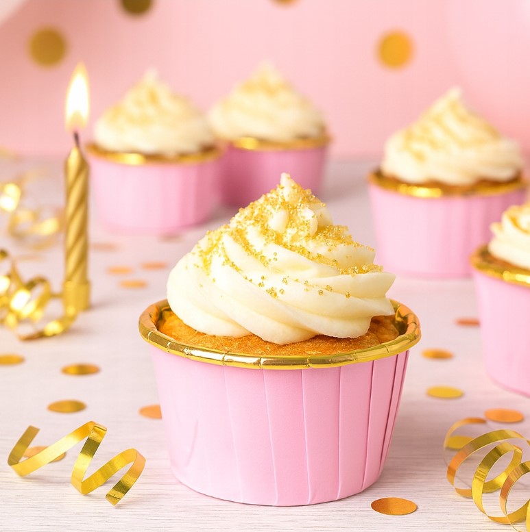 ✅Upieczone w złotych formach babeczki świetnie sprawdzą się jako dekoracja na weselach, rocznicach, urodzinach i baby shower.